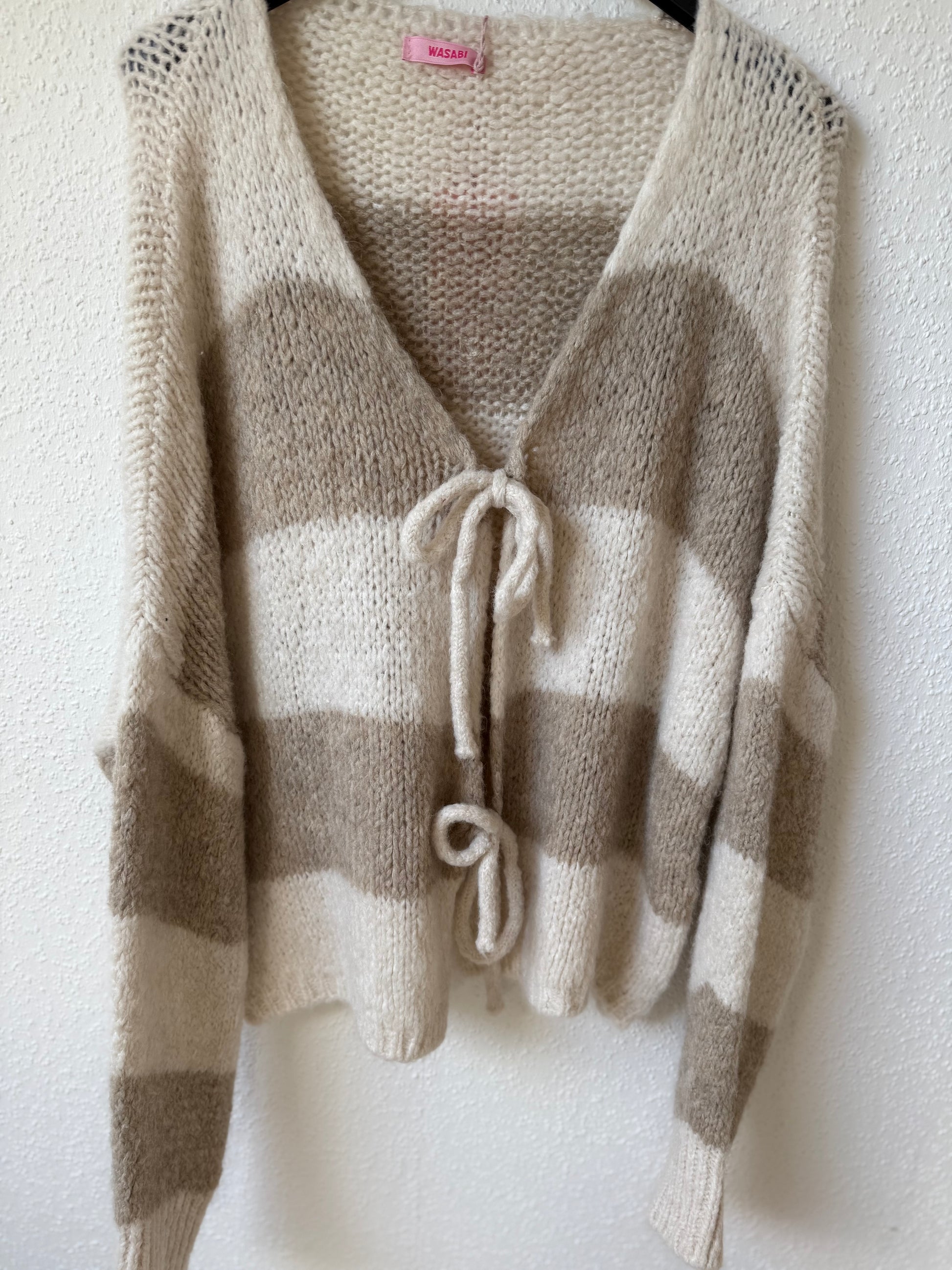 Gestreifter Cardigan mit schleifen zum Binden, beige